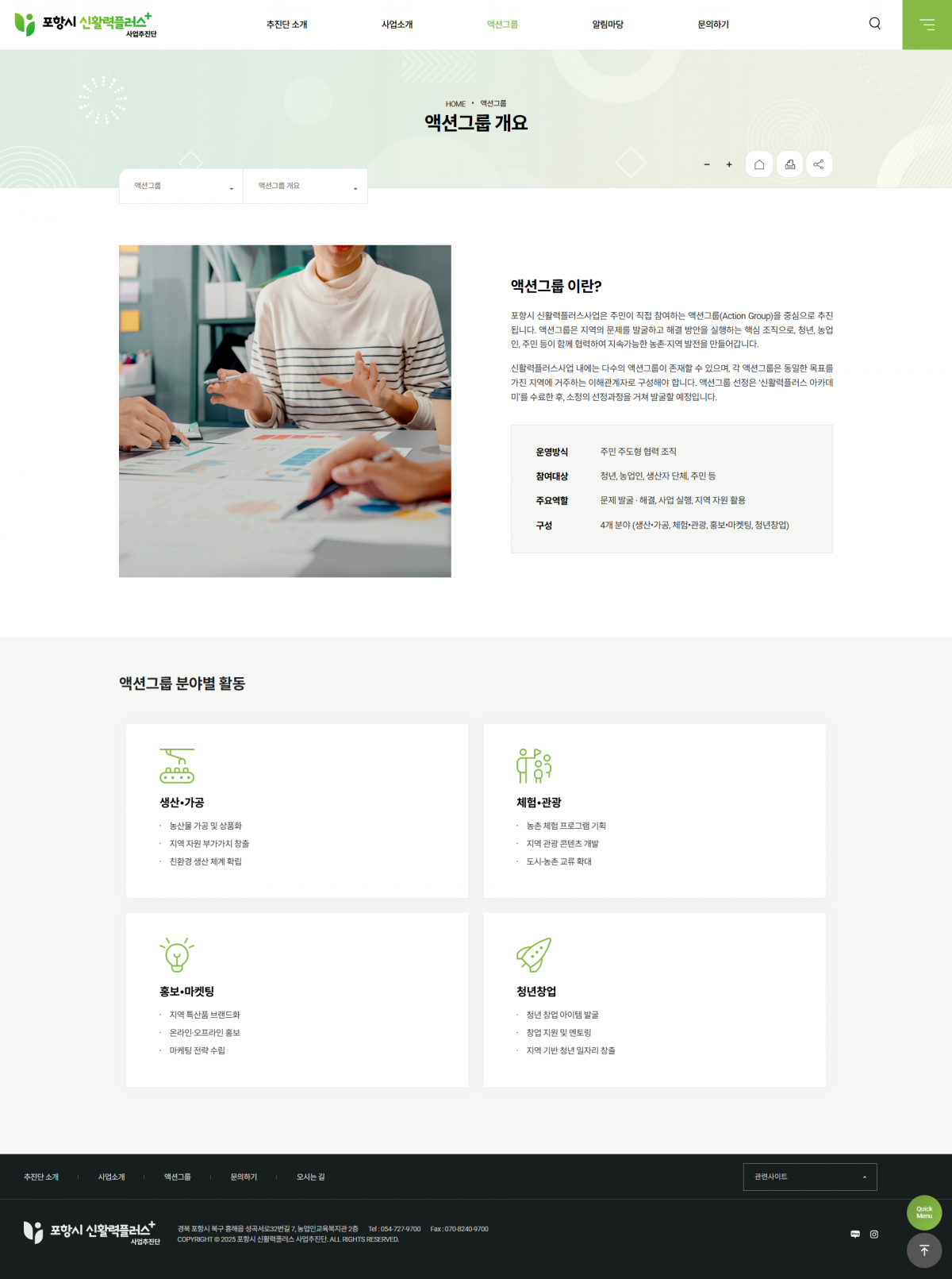 이번 홈페이지는 이러한 사업의 추진 현황, 액션그룹 활동, 지원 프로그램 안내 등 다양한 정보를 시민과 참여자들에게 효율적으로 전달할 수 있도록 설계되었습니다.