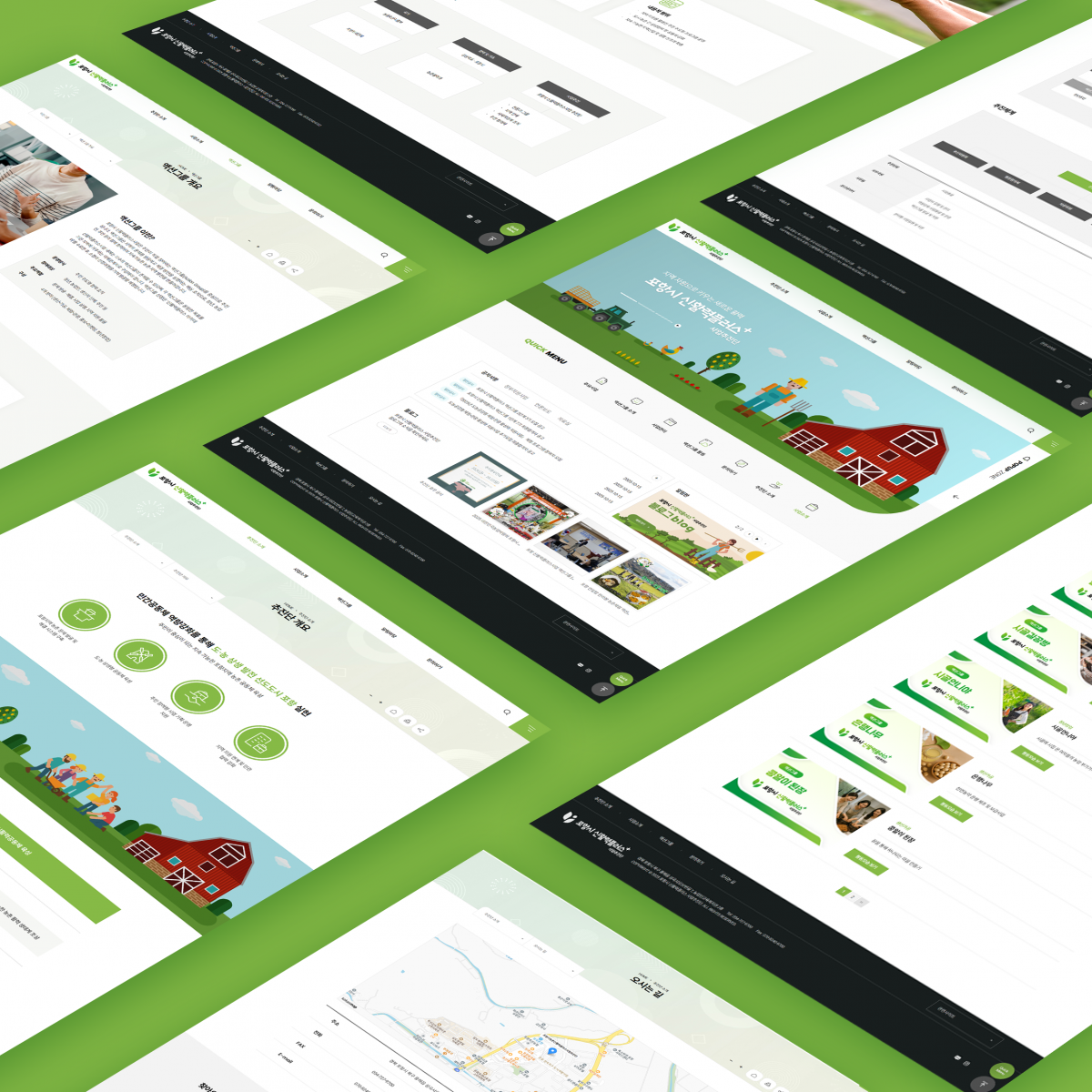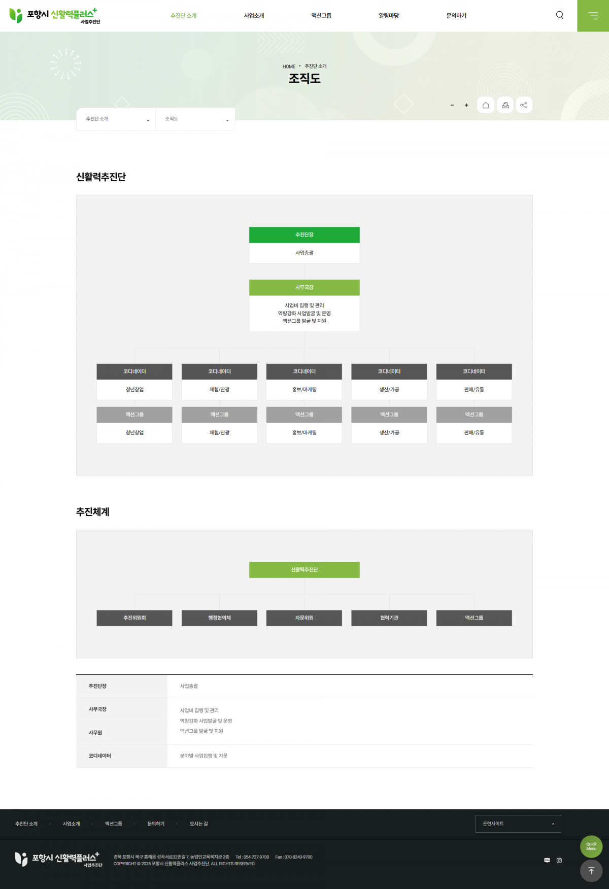 모던하면서도 공공기관 및 지역 사업 추진단에 어울리는 안정감 있는 디자인을 통해 정보 접근성과 가독성을 동시에 확보한 것이 특징입니다.