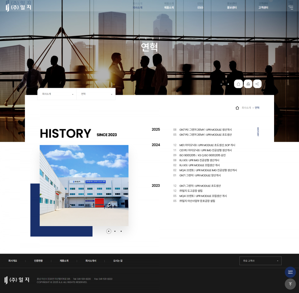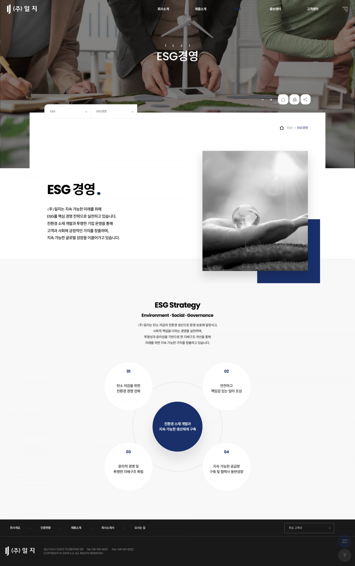 이번 홈페이지는 일지의 핵심 제품군과 제조 공정을 명확히 보여줄 수 있도록 구성하였으며,